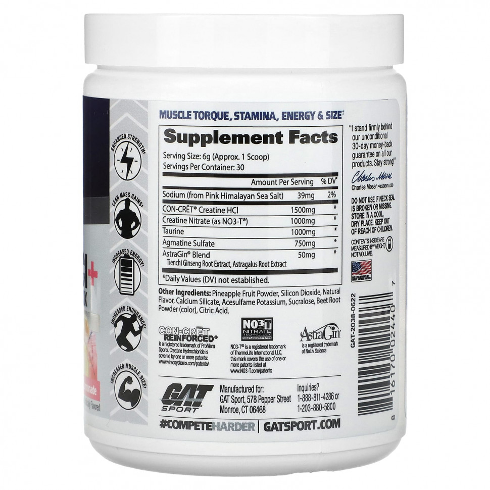Креатин гидрохлорид + использует запатентованную микродозировку гидрохлорида креатина. Эта формула с прекрасным вкусом сочетается с любыми популярными протеиновыми порошками, аминокислотами и продуктами для приема перед тренировкой от GAT Sport.