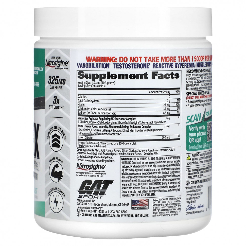 Начните с оценки вашей переносимости, смешав половину порции Nitraflex® со 150 мл (5 унциями) холодной воды. Принимать за 30 минут до тренировки. В зависимости от переносимости смешайте 1 порцию (1 мерную ложку) NITRAFLEX® с 8–10 унциями холодной воды и выпейте в течение 30 минут перед тренировкой. Принимайте препарат не позднее, чем за 5 часов до сна.