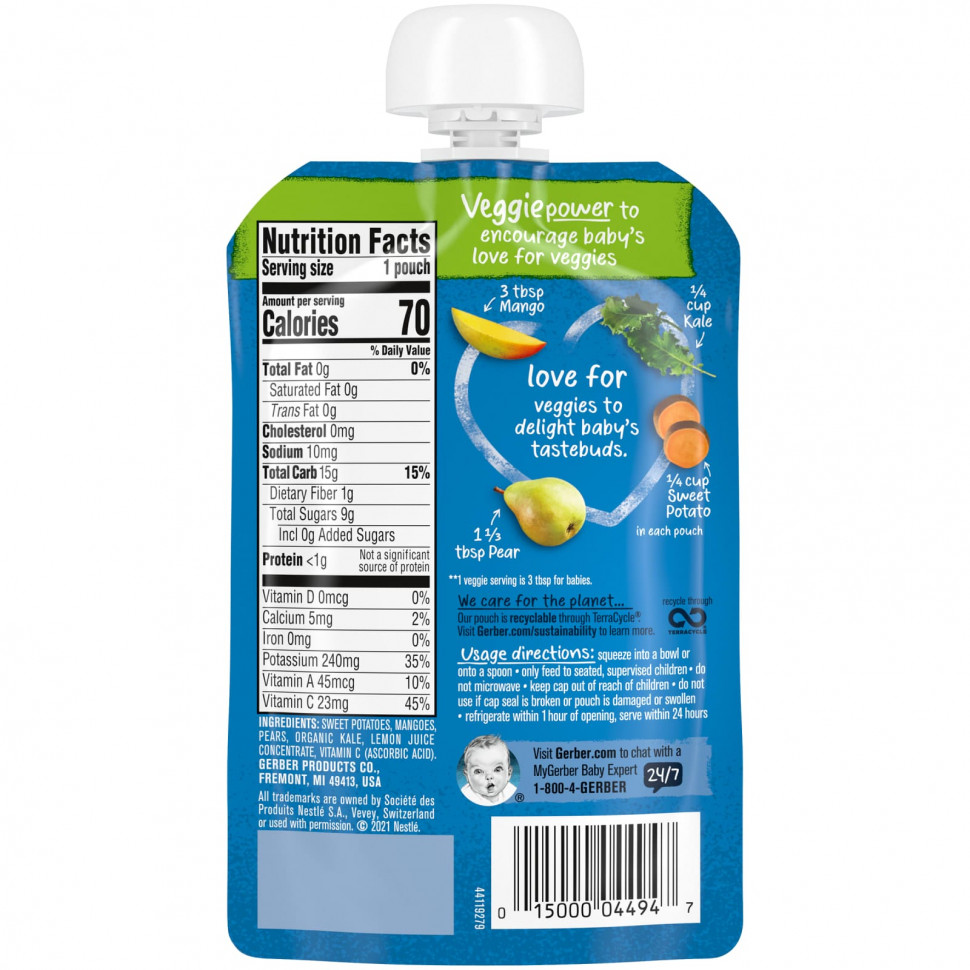 Батат, манго, груши, органическая листовая капуста, концентрат лимонного сока, витамин С (аскорбиновая кислота).
