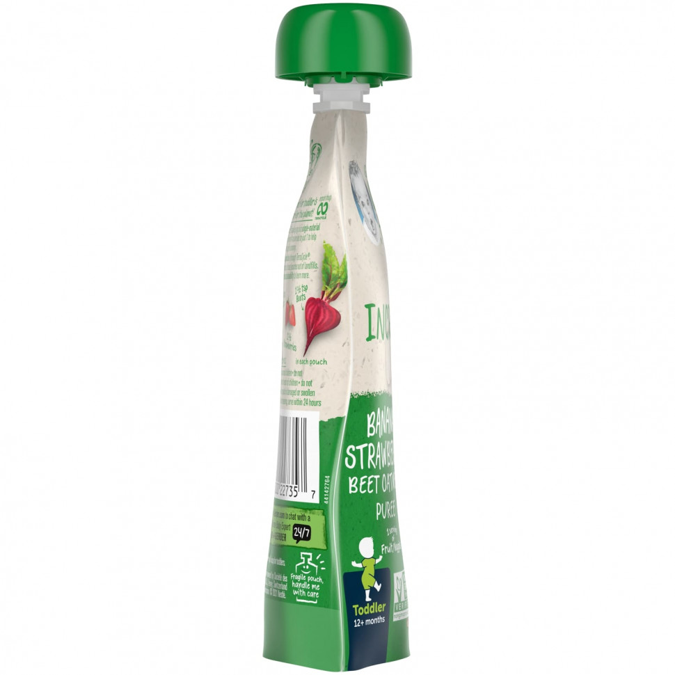 Органические бананы, вода, органическая клубника, органическая свекла, органическая овсяная мука (содержит пшеницу), концентрат органического лимонного сока, витамин С (аскорбиновая кислота).