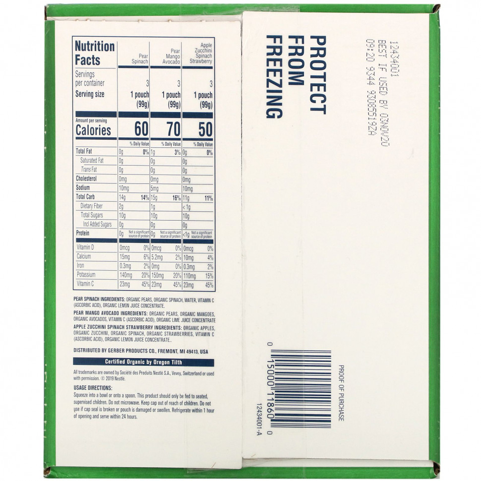 Бананы/ ананас/ авокадо и гранола ,Бананы/ малина и овес ,Бананы/ сладкий картофель и папайя ,Груши/ Кале и Шпинат ,Груши/ Сквош и ежевики ,Груши/ тыква/ персики и гранола ,Груши/ Цуккини и горох ,Плоды груши/ тыквы и страсти ,Сладкий картофель/ манго и морковь ,Яблоки/ голубика и овес ,Яблоки/ гуавы и свеклы ,Яблоки/ Кале и Авокадо ,Яблоки/ тыква и морковь |