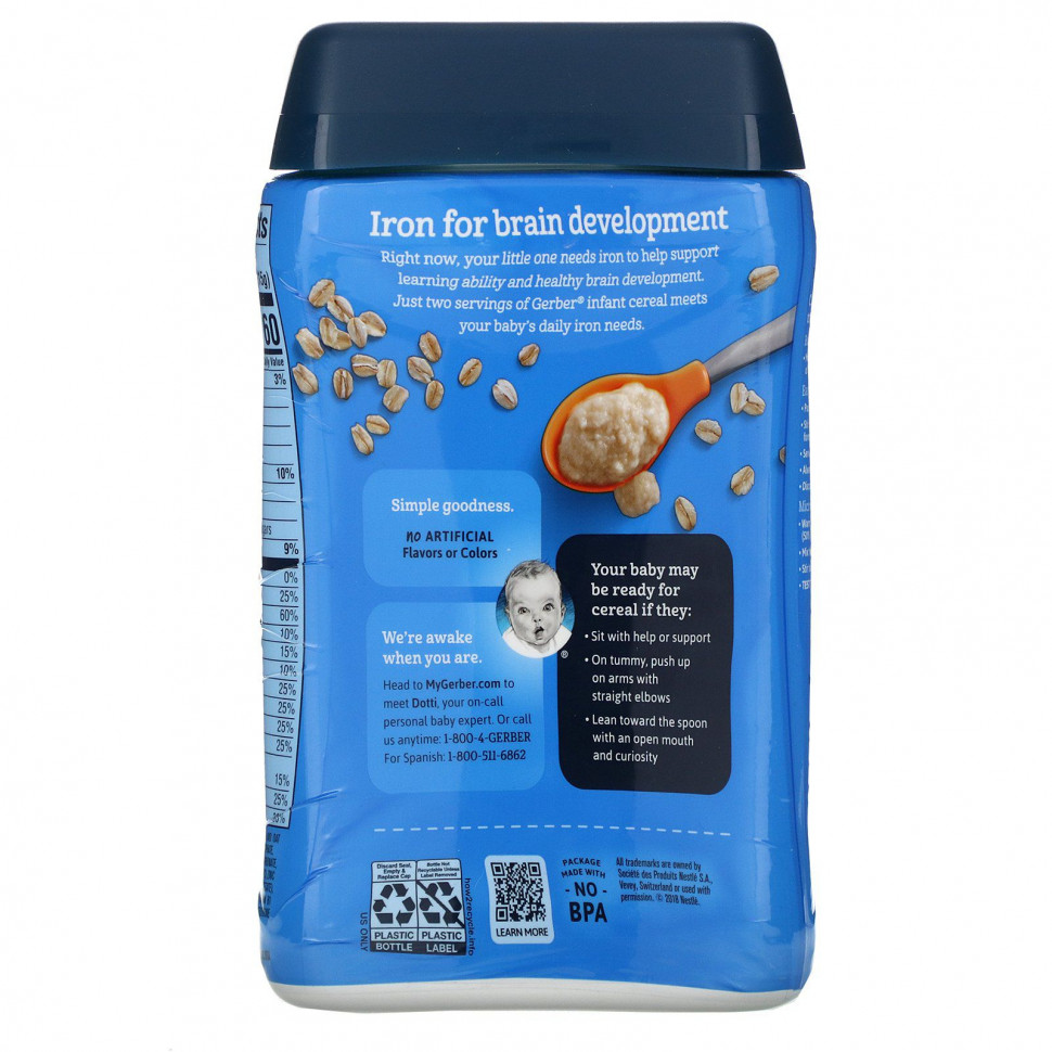 Прямо сейчас ваш малыш нуждается в железе для поддержания способностей к обучению и здорового развития мозга. Всего две порции каши для малышей от Gerber® удовлетворят дневную потребность вашего ребенка в железе.