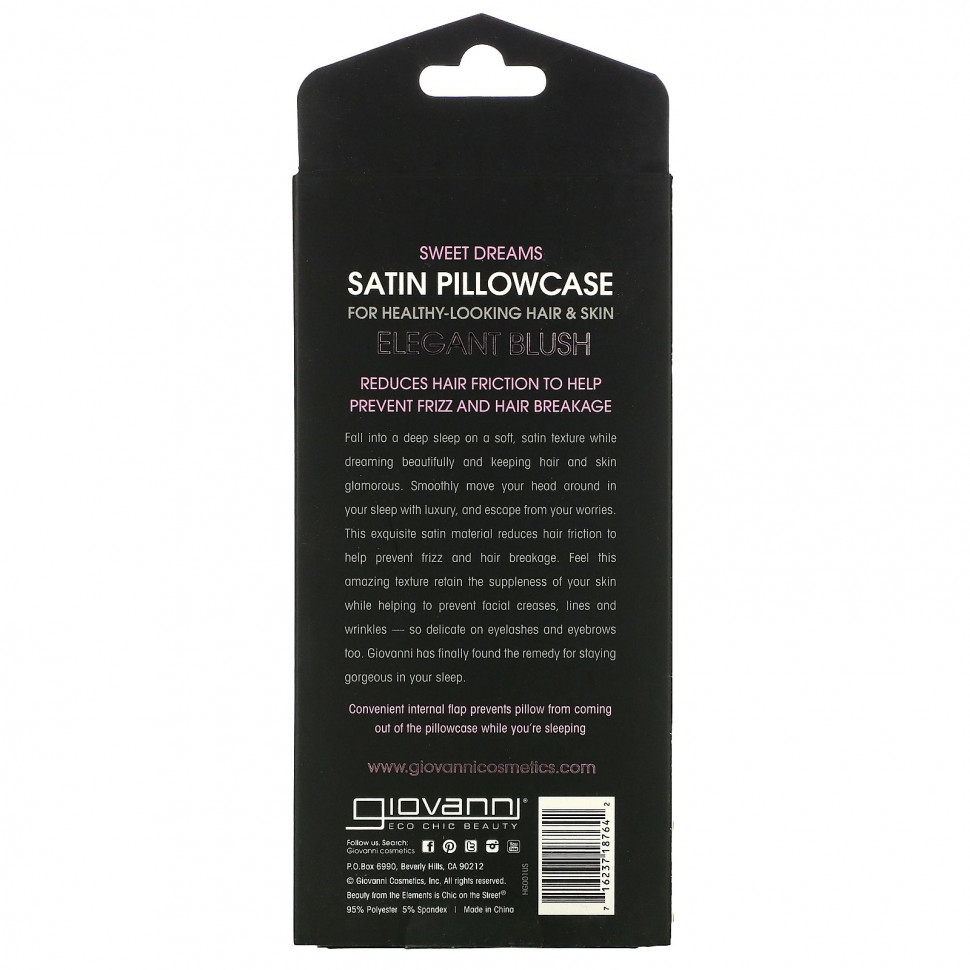 Погрузитесь в глубокий сон на мягком сатиновом материале, смотрите красивые сновидения и сохраняйте волосы и кожу роскошными. Плавно двигайте головой во сне и избегайте забот. Этот изысканный сатиновый материал снижает трение волос, предотвращая их пушение и ломкость. Почувствуйте, как эта удивительная ткань сохраняет эластичность вашей кожи, помогает предотвратить появление глубоких и мелких морщин на лице — так нежно на ресницах и бровях тоже. Компания Giovanni наконец-то нашла средство, чтобы оставаться великолепным во сне.