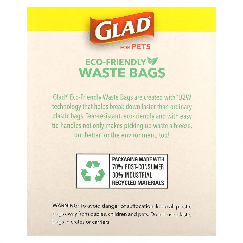 Экологичные пакеты для мусора Glad® созданы с использованием технологии D2W, которая разрушается быстрее, чем обычные пластиковые пакеты. Износостойкие, экологически чистые продукты с удобными ручками для завязывания не только упрощают вывоз мусора, но и наносят вред окружающей среде!