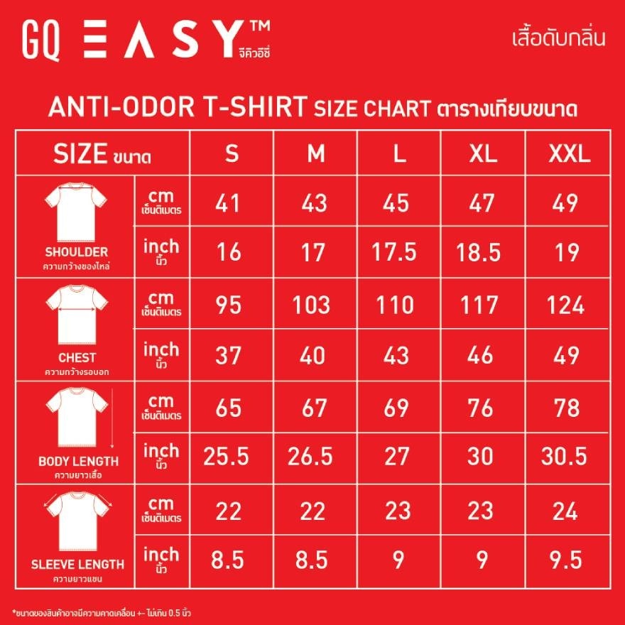 GQ Easy T-shirt, dry, cool, does not stink of sweat. With innovation to stop bacteria for 24 hours, reduce musty smell, soft fabric, comfortable to wear, quick drying, breathable T-shirt that is more than a normal t-shirt, both soft and comfortable, not uncomfortable. There are 4 sizes, S, M, L, XL and are both white. and black for both men and women Don’t be afraid of the musty smell. Can be worn for both outdoor and indoor exercise With special features, dry, cool, not smelly sweat Housewives don’t have to worry. When the fabric is included in the basket The smell of the fabric is not musty. with all the special features Don’t worry, don’t worry Even wet clothes, easy to dry quickly, reduce the incidence of mold in the fabric, reduce musty odor, causing no odor to stick to the clothes that bother Key Features — GQ Anti-bacterial: Reduce musty smell, inhibit bacteria. — GQ Dry: Quick drying, breathable.