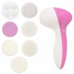 В комплект входит: 1 устройство для ухода за лицом и 7 разных вращающихся насадок: шлифующая насадка, щетка с короткой щетиной, щетка с длинной щетиной, спонж для макияжа, мягкий латексный спонж, массажер и пемза.