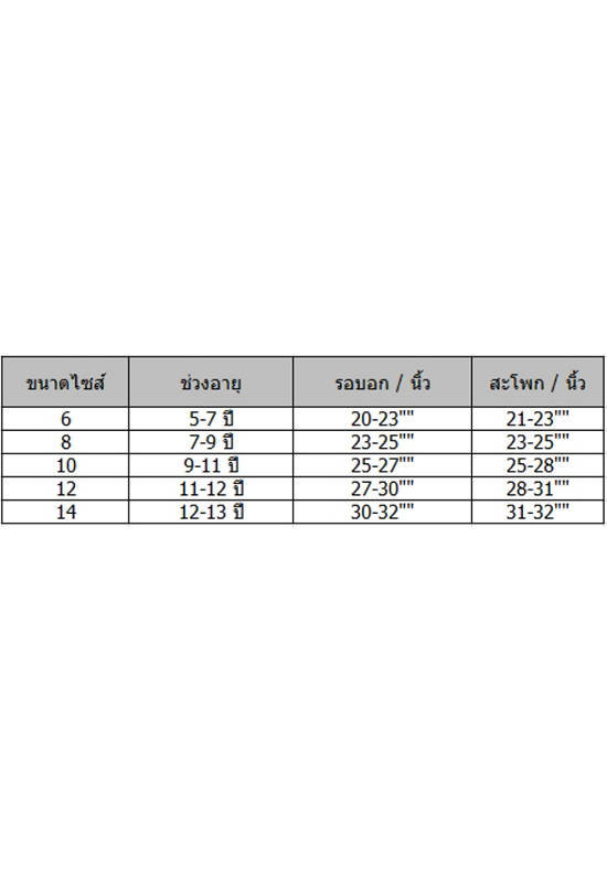 14 | 12-13 ปี | 30-32″ | 31-32″ |
