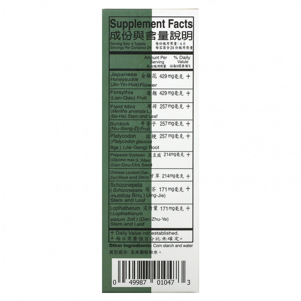 Цветок жимолости, плоды форзиции, Стебель и лист полевой мяты, плоды лопуха, готовая соя, корень китайской солодки, цзин-цзе, Цзе-гэн, дань-чжу-йе.