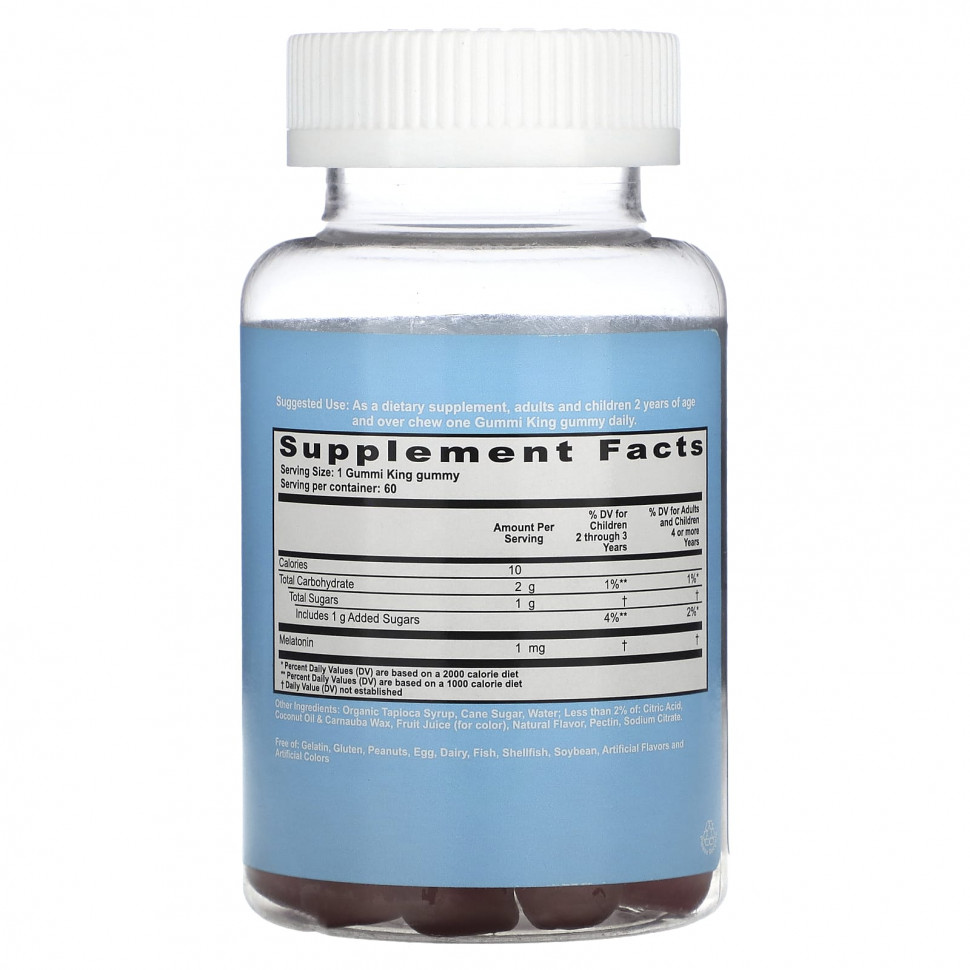 Мелатонин Gummi King ™ разработан специально для поддержания здорового сна. Эти вкусные жевательные мармеладки с натуральным вкусом содержат здоровое и безопасное количество мелатонина, которое помогает детям отдыхать и спать, в которых они нуждаются.