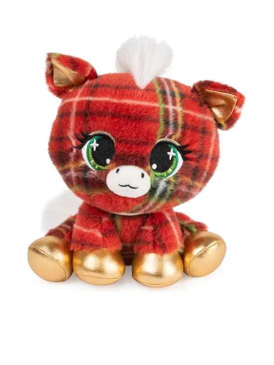 Dolls from the brand GUND. Tara McNeigh is a special edition, high-spirited horse with a traditional twist. Decked-out in a trendy tartan pattern, her plush is accented by golden metallic details in her ears and hooves. Even her eyeshadow is golden, making her vibrant green eyes pop. Tara can be found riding her bike and visiting the lighthouses in and around Providence.