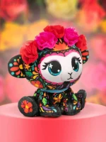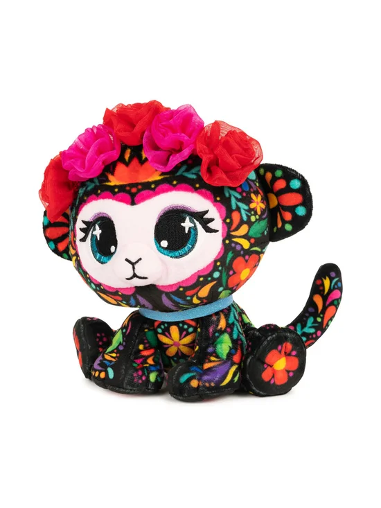 Sofia Lopez Monkey Doll from GUND. The beautiful Sofia Lopez Monkey Doll is a stunning black-bodied monkey doll dressed in a bright floral print from ear to tail. With a beautiful crown of marigold flowers Sparkling eyes with eye-catching purple eyeshadow that stands out and has a unique style. You can collect Collection Secret Garden from P.Lushes Pets, a team of super chic fashionistas with a chic style. The fabric and fur have many sparkles. Luxurious, premium fabrics and a shimmering collar complete the fashion-inspired look. Can be wiped clean or washed. Size 6 inches, suitable for children aged 3 years and up. Genuine copyright from Gunds and Spinmaster.