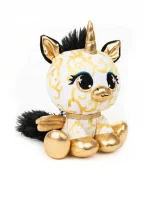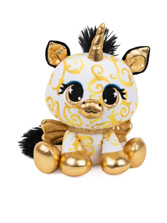 GUND You can never go too bold with gold! With her shimmering golden wings, Vera Von Corn leaves a golden trail of gold wherever she flies, especially when checking out the newest fashions in her fabulous hometown of Milan. From her golden horn, ears, nose, and hooves to her matching glittering collar, this special-edition Pegasus is dripping in her favorite thing in the world. Her fur is swirled with gold filigree, while her eyes sparkle just like a 24-carat ring! She just cant get enough!
