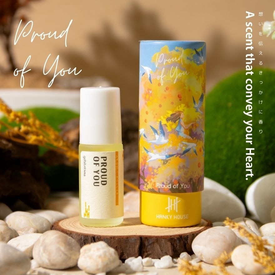 Hanky House Heart Healing Collection Scents that Heal the Body and Soul In todays society, filled with stress, people are becoming more anxious and depressed. We want people to notice the happiness in their daily lives through the Heart Healing Collections aromatic sticks. It is divided into four positive meanings inspired by everyday Thai expressions. Its like having someone to support you. This is the inspiration behind the aromatic sticks that help heal both the body and soul. They can also serve as gifts of care for oneself or loved ones. Because sometimes, for those facing challenges, a small word of encouragement can have a profound meaning, enough to help them endure difficulties and move forward. Proud of You brings positive energy and pride, achievable from within and radiating outward. Therefore, the design of the Proud of You scent, following the concept of Energizing inspired, comes from pride. If you want to convey positive feelings and show someone that you are proud of them for motivation, we recommend the Proud of You scent, which is composed of Yuzu Reduces anxiety and relieves fatigue. Orange Adds freshness and counters negative thoughts. Rosemary: Stimulates the brain, enhances memory and concentration. Grapefruit: Provides freshness and balances moods.