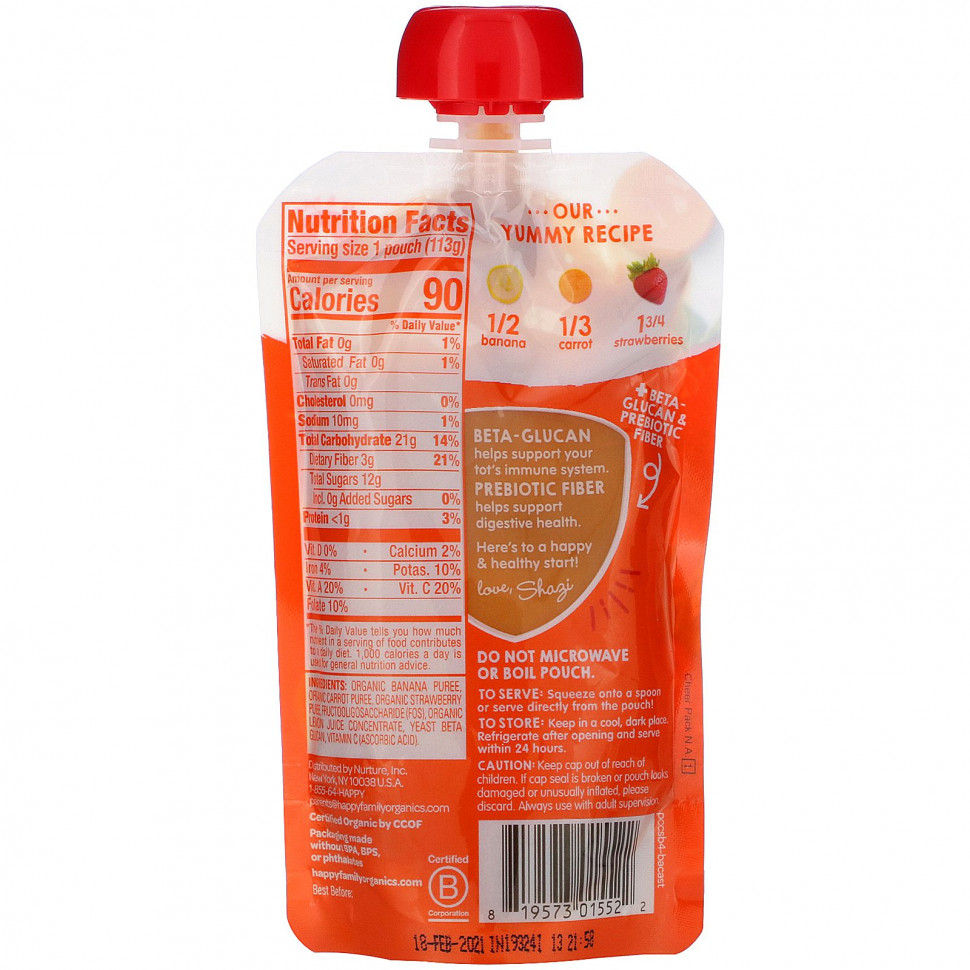 Органические банан/ морковь и клубника ,Органические банан/ шпинат и черника ,Органические груша/ свекла и ежевика |
