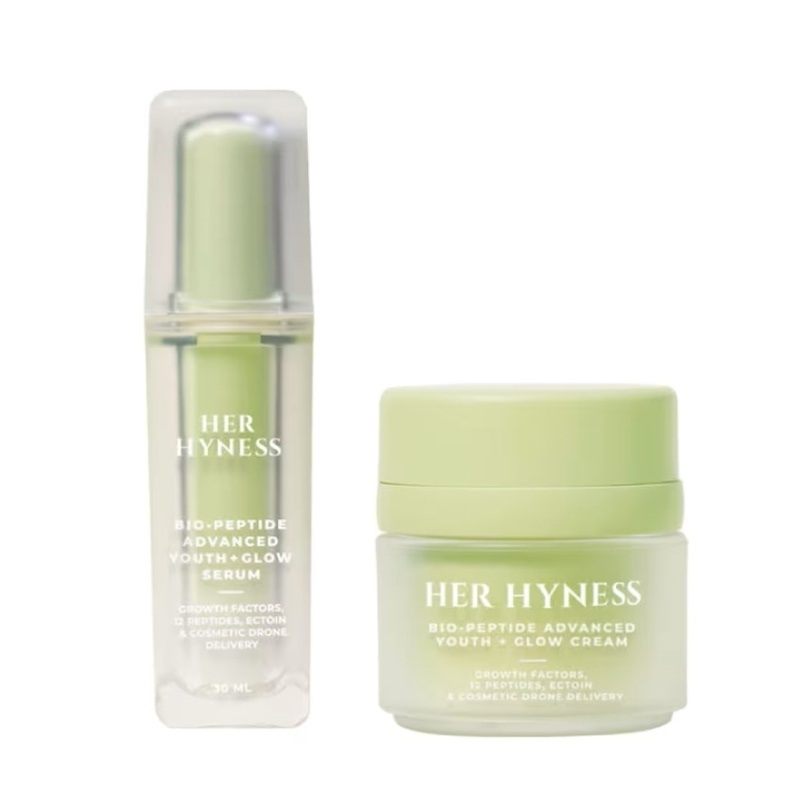 HER HYNESS BIO-PEPTIDE ADVANCED YOUTH GLOW SERUM.THE POWERFUL, CONCENTRATED SERUM TO FIGHT MULTIPLE SIGNS OF AGING BOOST SKIN RADIANCE + HER HYNESS BIO-PEPTIDE ADVANCED YOUTH GLOW CREAM. THE INTENSE HYDRATING CREAM TO FIGHT MULTIPLE SIGNS OF AGING BOOST SKIN NATURAL RADIANCE