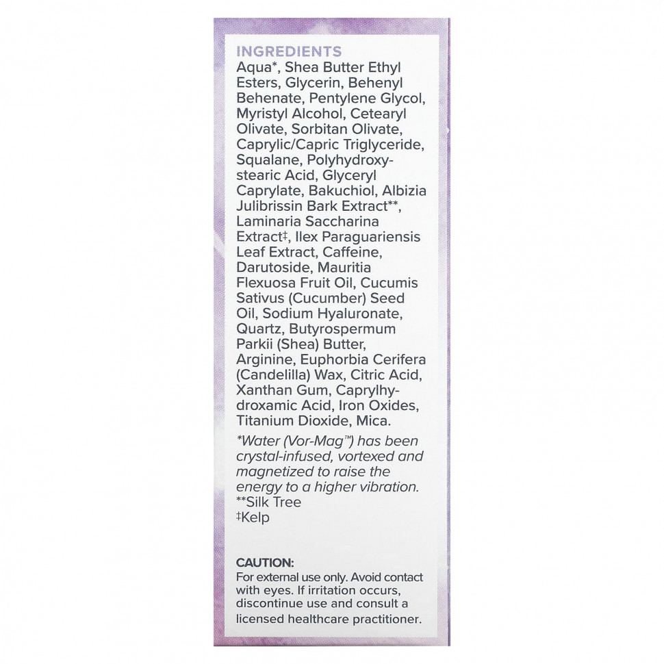 Аква *, этиловые эфиры масла ши, глицерин, бегенил бегенат, пентилен гликоль, миристиловый спирт, цетеарил оливат, сорбитан оливат, каприловый/каприновый триглицерид, сквалан, полигидроксистеариновая кислота, глицерил каприлат, бакучиол, albizia julibrissin bark extract **, экстракт ламинарии сахаристой ‡, экстракт листьев llex paraguariensis, кофеин, дарутозид, масло плодов мавриции извилистой (Mauritia flexuosa), масло семян огурца (Cucumis sativus), гиалуронат натрия, кварц, масло ши (Butyrospermum parkii), аргинин, канделильский воск (Euphorbia cerifera), лимонная кислота, ксантановая камедь, каприлгидроксаминовая кислота, оксиды железа, диоксид титана, слюда.