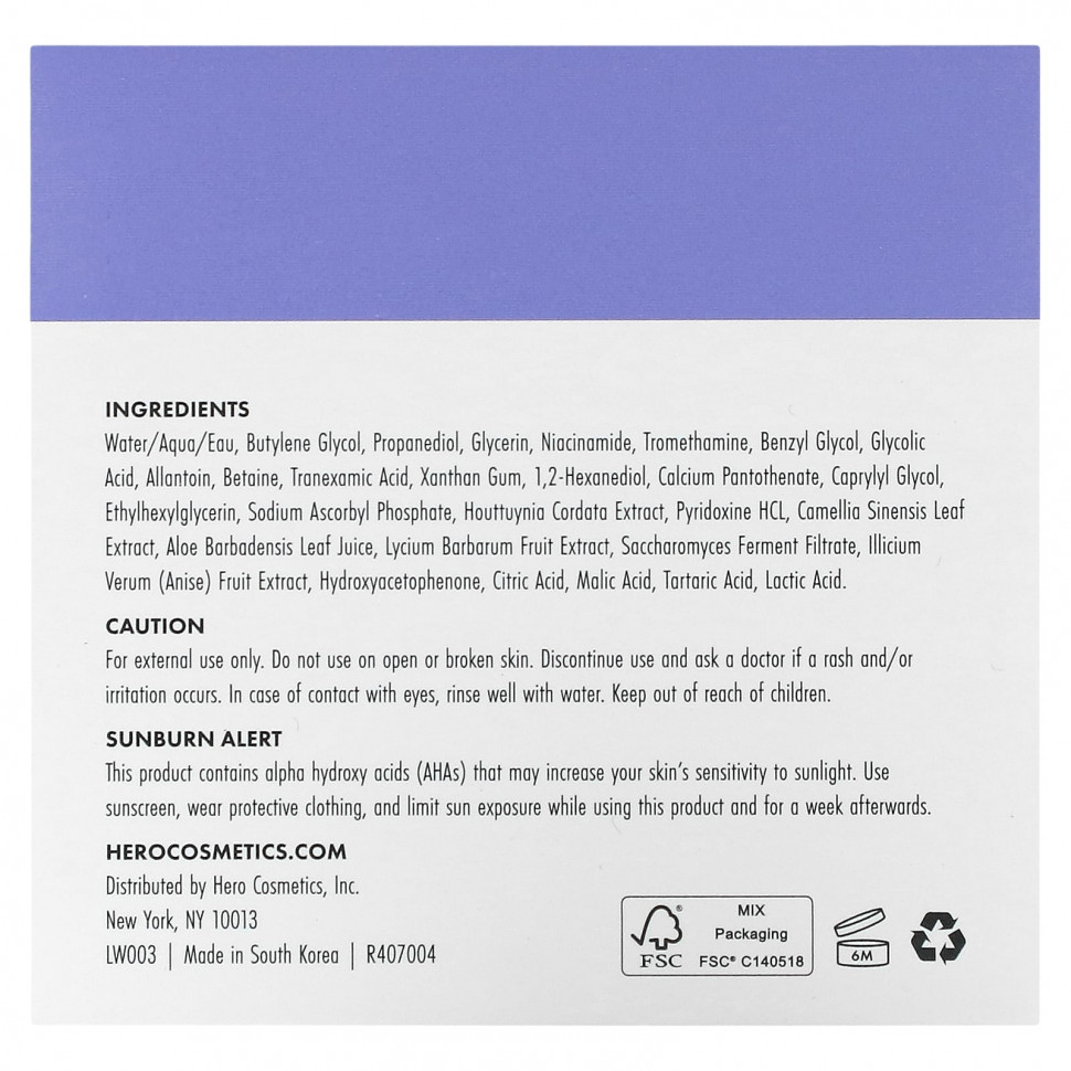 Вода, бутиленгликоль, пропандиол, глицерин, никотинамид, трометамин, бензилгликоль, гликолевая кислота, аллантоин, бетаин, транексамовая кислота, ксантановая камедь, 1,2-гександиол, пантотенат кальция, каприлилгликоль, этилгексилглицерин, аскорбил фосфат натрия, экстракт хауттюйнии сердцевидной (Houttuynia cordata), пиридоксина гидрохлорид, экстракт листьев зеленого чая (Camellia sinensis), сок листьев алоэ вера (Aloe barbadensis), экстракт ягод годжи (Lycium barbarum), продукт ферментации дрожжевых грибков-сахаромицетов., экстракт плодов аниса звездчатого (Illicium verum), гидроксиацетофенон, лимонная кислота, яблочная кислота, винная кислота, молочная кислота.