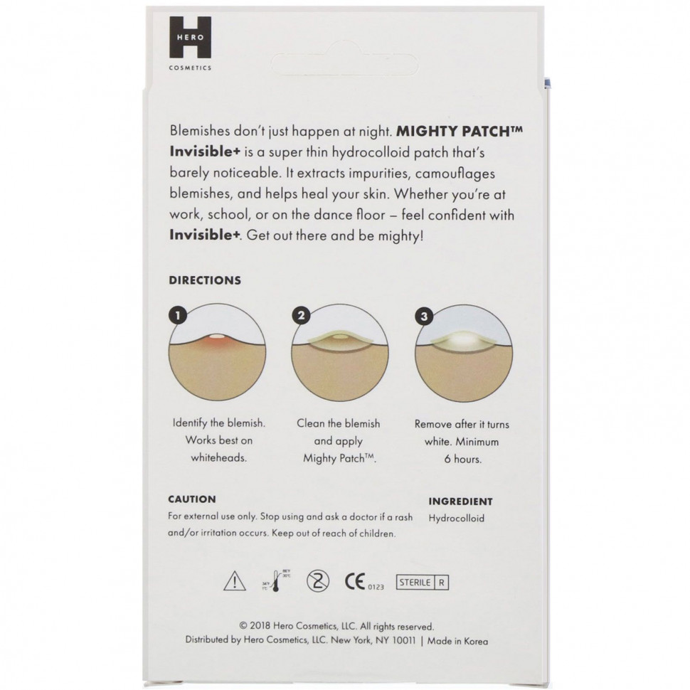 Прыщи могут появиться не только ночью. Mighty Patch «Невидимые+» — это супертонкие гидроколлоидные пластыри, которые почти не заметны. Они выводят загрязнения, маскируют проблемные зоны и способствуют заживлению кожи. Чувствуйте себя уверенно с пластырями «Невидимые+», где бы вы ни были — на работе, в школе или на вечеринке. Можете ни о чем не беспокоиться!