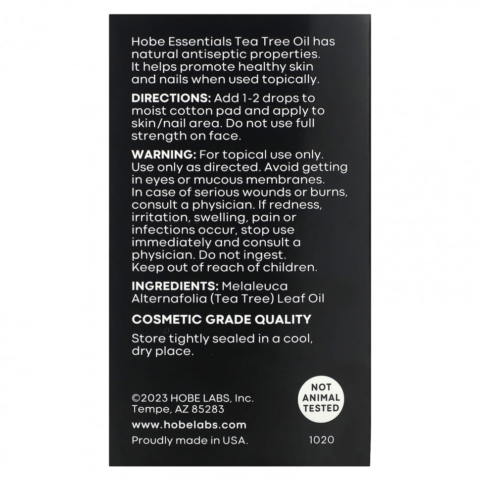 Масло чайного дерева Hobe Essentials обладает природными антисептическими свойствами. При местном применении он способствует здоровью кожи и ногтей.