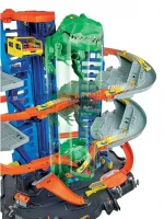 They can race down through the multi-level garage and experiment with multi-play mode for continuous thrills! Connects to other Hot Wheels sets (sold separately) and includes 2 Hot Wheels 1:64 scale vehicles and a feature for Hot Wheels id action, too! Plug in the Hot Wheels id Portal (sold separately) to unlock the additional play experience: scan a car, race opponents, escape from Robo T-Rex and win!