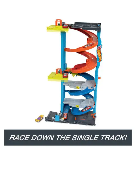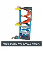 Experience epic 2-in-1 racing with the Hot Wheels City Transforming Race Tower. This innovative playset transforms from side-by-side competing tracks with fair-start gates to a single track that’s more than 26″ tall. Track details on the base encourage independent storytelling, and, with 1 Hot Wheels car included, this makes a great gift for kids 4 years old and older. Connect it to other sets to extend the race and excitement.