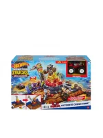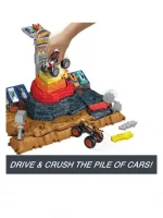 Kids can experience epic Monster Truck-style smashing and crashing in the Hot Wheels Monster Trucks Arena Smashers Bone Shaker Ultimate Crush Yard playset. Five smash spots indicate where the action takes place and the base moves and shakes, adding sensory feedback to enhance the play. The set includes a 1:64 scale Hot Wheels Monster Trucks Bone Shaker and 3 crushable cars for extra destruction. It can connect to other sets so kids can build out a Hot Wheels Monster Trucks Arena Smashers world.