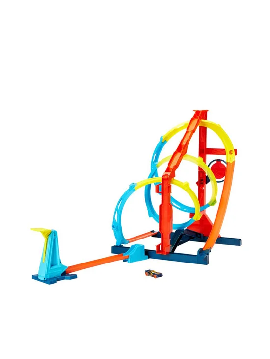 The Hot Wheels Track Builder Unlimited Corkscrew Twist Kit Playset is full of dizzying excitement: Kids conquer the corkscrew by launching their cars through the triple loop spiral and hitting the target that awaits at the end! Change the set-up to launch cars directly at the target through the middle of the corkscrew. The launcher, target and peripheral track pieces have dedicated spots on the base for easy and convenient storage. Includes 1 Hot Wheels car and can connect to other sets.