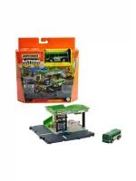 Matchbox Action Drivers World Expansion Playsets From HOTWHEELS brand. The Matchbox Action Drivers Playsets feature realistic locations kids love and recognize with cool details. The Bus Station set comes with a 1:64 bus. When it pulls into the station, it activates a figure at the bus stop to move. At the Pizza Hut set, driving up to the store activates doors to open and the worker to move forward holding a pizza. It also includes a car and a topper just like on real pizza delivery cars! These connect to other Matchbox and Hot Wheels sets.