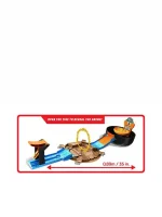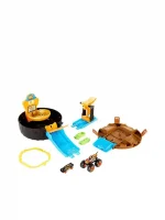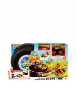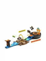Strengthen skills and imagination for your kids with Toys from HOTWHEELS The Hot Wheels Monster Trucks Stunt Tire with a handle for portability and opens to reveal an over-the-top stunt arena. The assembled set is 35+ inches long with awesome features. Includes the Tiger Shark monster truck and a Hot Wheels 1:64 scale vehicle. Open and reveal a launcher for either two cars or one monster truck to takeoff up the ramp and through a «ring of fire». The vehicle must land just right on a platform that will flip it into the winner’s circle and rate their performance.