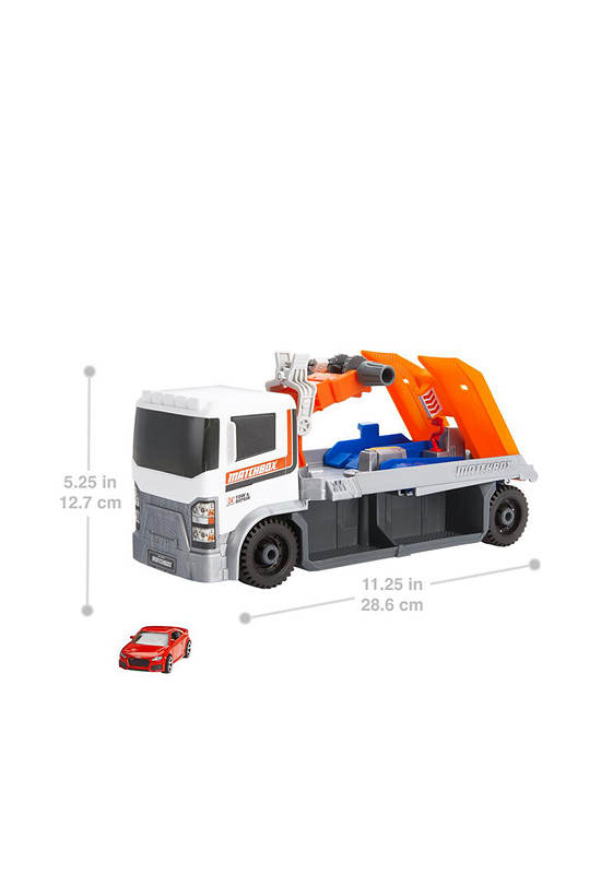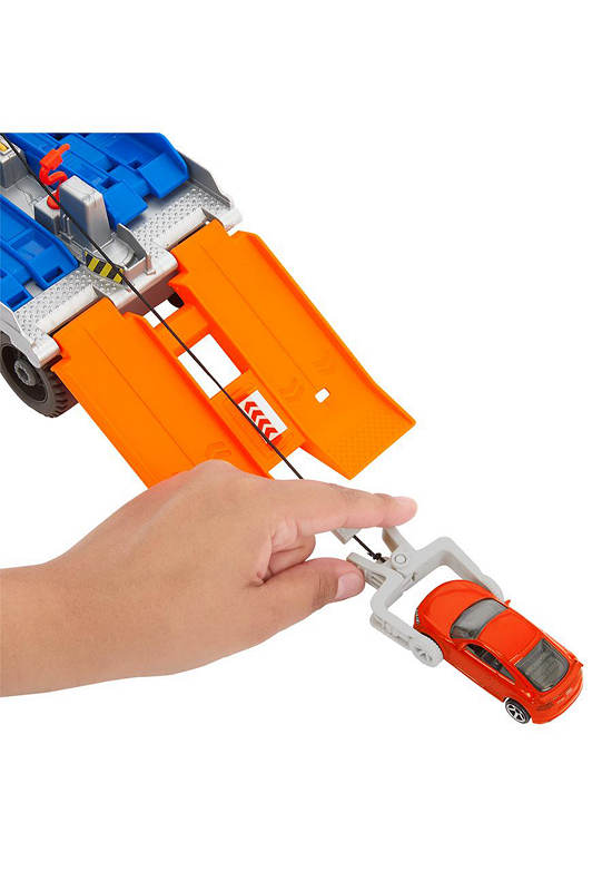 There’s trouble on the road and the Matchbox Action Drivers Tow & Repair Truck from Hot Wheels is on-call, ready to assist. Attach the tow hook to the included 1:64 scale Audi TT RS Coupe and turn the knob on the crane to bring it onto the diagnostic machine. After checking the engine, bring the car over to the lift to examine its undercarriage. If it’s good to go, fill the tires with air and race off to new adventures. Kids can connect it to other playsets for open-ended play. Additional sets sold separately.
