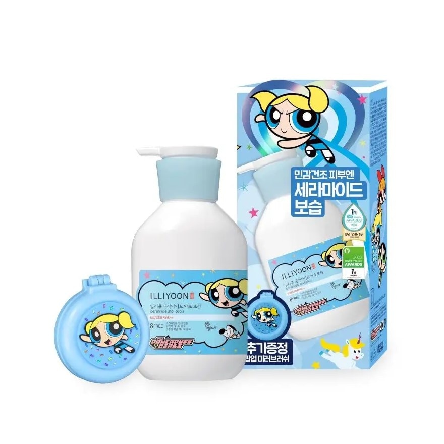 ILLIYOON CERAMIDE ATO LOTION X POWERPUFFGIRLS LIMITED SET. Facial and body lotion products Gentle and effective Special solutions for sensitive skin Moisturizing lotion with a light texture. Replenishes moisture for a long time Soothes the skin from irritation, restores and strengthens the skin barrier. The value of natural ceramide extracts Tested by skin experts Free from 8 irritants Even newborns can use it