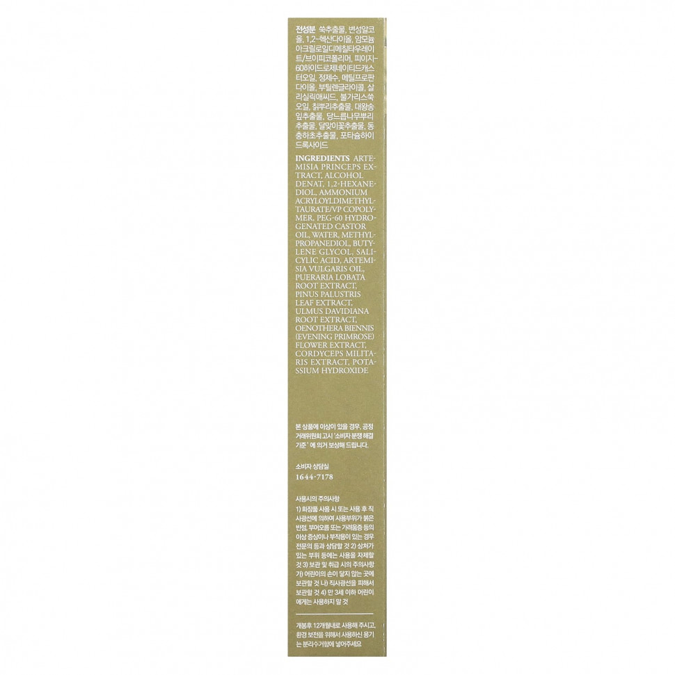 Экстракт полыни, денатурированный спирт, 1,2-гександиол, акрилоилдиметилтаурат аммония / ВП сополимер, ПЭГ-60 гидрогенизированное касторовое масло, очищенная вода, метилпропандиол, бутиленгликоль, салициловая кислота, полыни (Artemisia vulgaris), экстракт корня пуэрарии лобата, экстракт листьев сосны болотной, экстракт корня ульмуса давидиана, экстракт Oenothera odorata, экстракт гриба кордицепс, гидроксид калия.