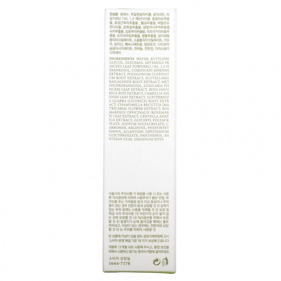 Вода, бутиленгликоль, глицерин, экстракт листьев полыни индийской (Аrtemisia princeps) (2,1%), 1,2-гександиол, экстракт кордицепса (Cordyceps sinensis), экстракт корня рейнутрии японской (Polygonum cuspidatum), экстракт корня шлемника (Scutellaria baicalensis), метилпропандиол, экстракт листьев бузульника Фишера (Ligularia fishceri), экстракт бутонов розы даурской (Rosa davurica), экстракт листьев зеленого чая (Camellia sinensis), экстракт корня солодки (Glycyrrhiza glabra), экстракт цветков ромашки (Chamomilla recutita), экстракт листьев розмарина (Rosmarinus officinalis), экстракт готу колы (Centella asiatica), глицерил полиакрилат, полиакрилат натрия, карбомер, аргинин, феноксиэтанол, аллантоин, дикалия глицирризат, пантенол, ксантановая камедь, двунатриевая ЭДТК.