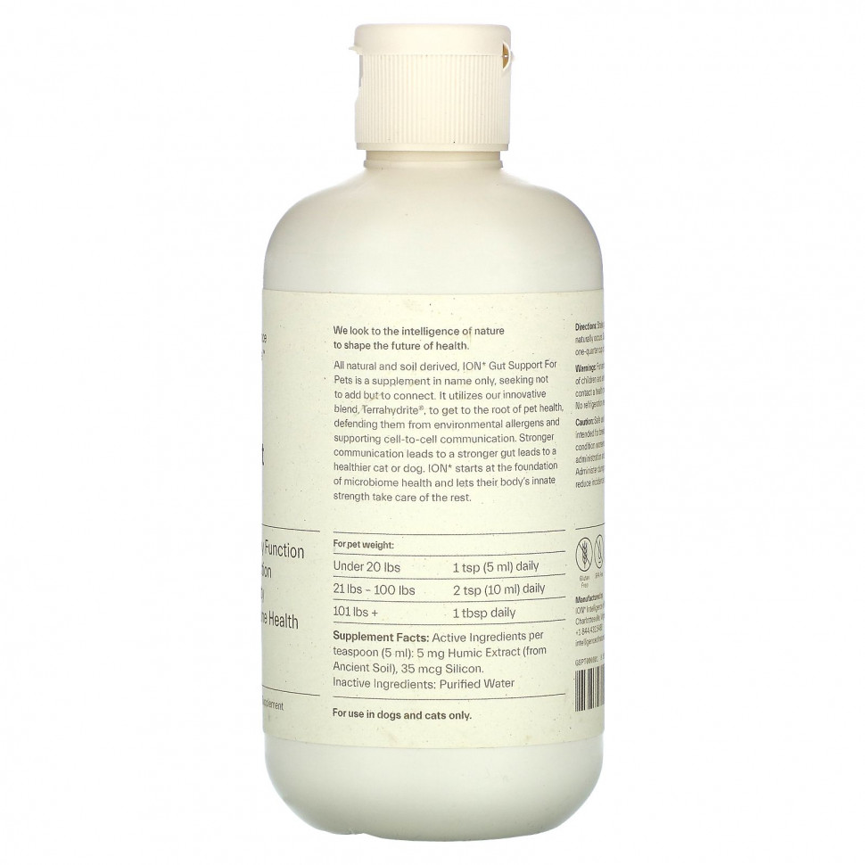 Добавка для поддержки кишечника домашних питомцев ION* Gut Support — полностью натуральный и полученный из почвы продукт. Она является добавкой только по названию, но на самом деле цель ее приема не добавить, а соединить. В ней используется наша инновационная смесь, Terrahydrite®, которая воздействует на основание здоровья питомца, защищая его от аллергенов окружающей среды и поддерживая межклеточную коммуникацию. Улучшенная коммуникация делает кишечник сильнее, что, в свою очередь, укрепляет здоровье кошек и собак. ION* начинает действовать с основы здоровья микробиома и позволяет врожденным силам организма позаботиться обо всем остальном.