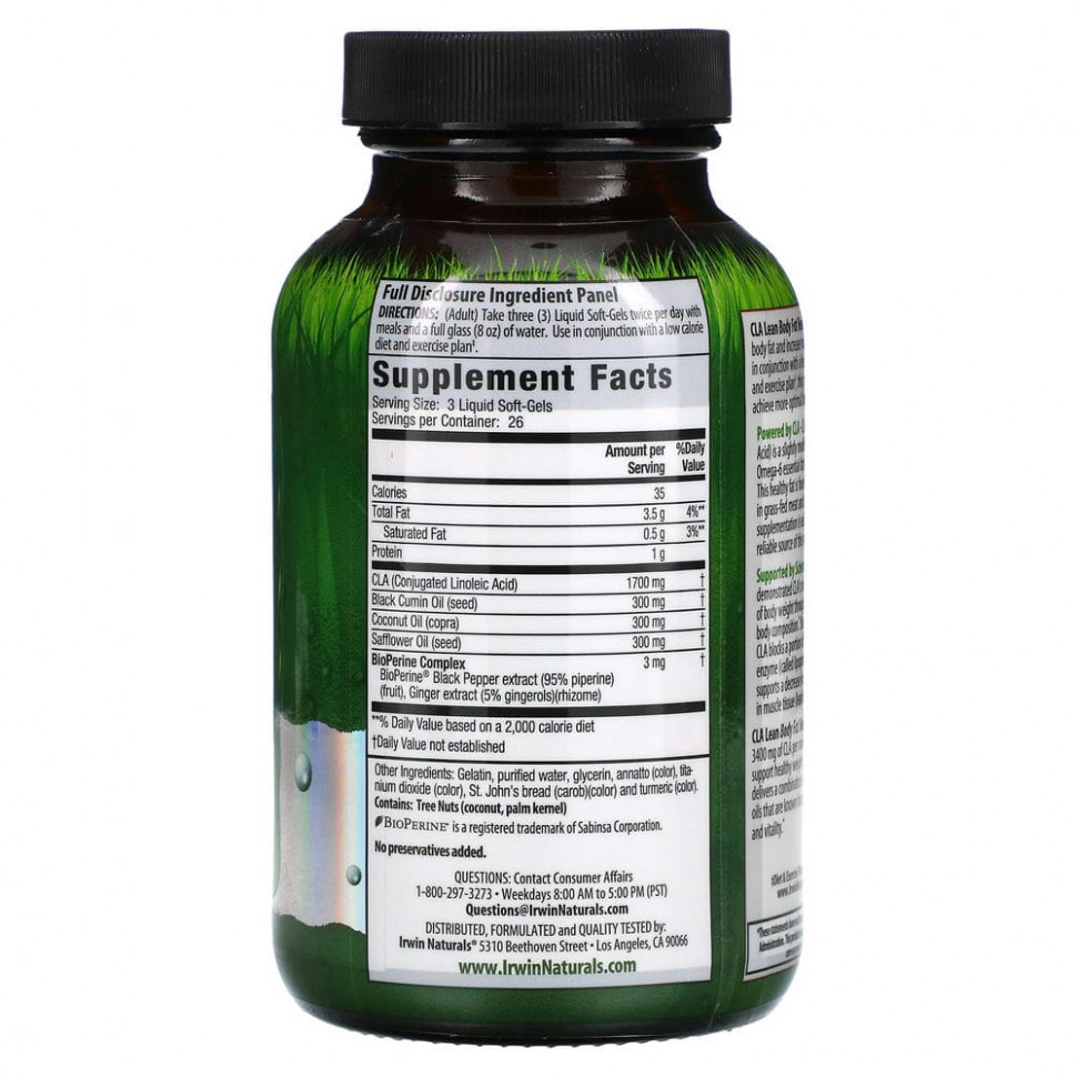 Содержит КЛК. КЛК (конъюгированная линолевая кислота) — это немного измененная форма незаменимой жирной кислоты омега-6: линолевой кислоты. Эта полезная жирная кислота в небольшом количестве содержится в мясе животных, выращенных на подножном корме, и в молочных продуктах. Но прием добавок является более простым и надежным источником этого мощного питательного вещества.