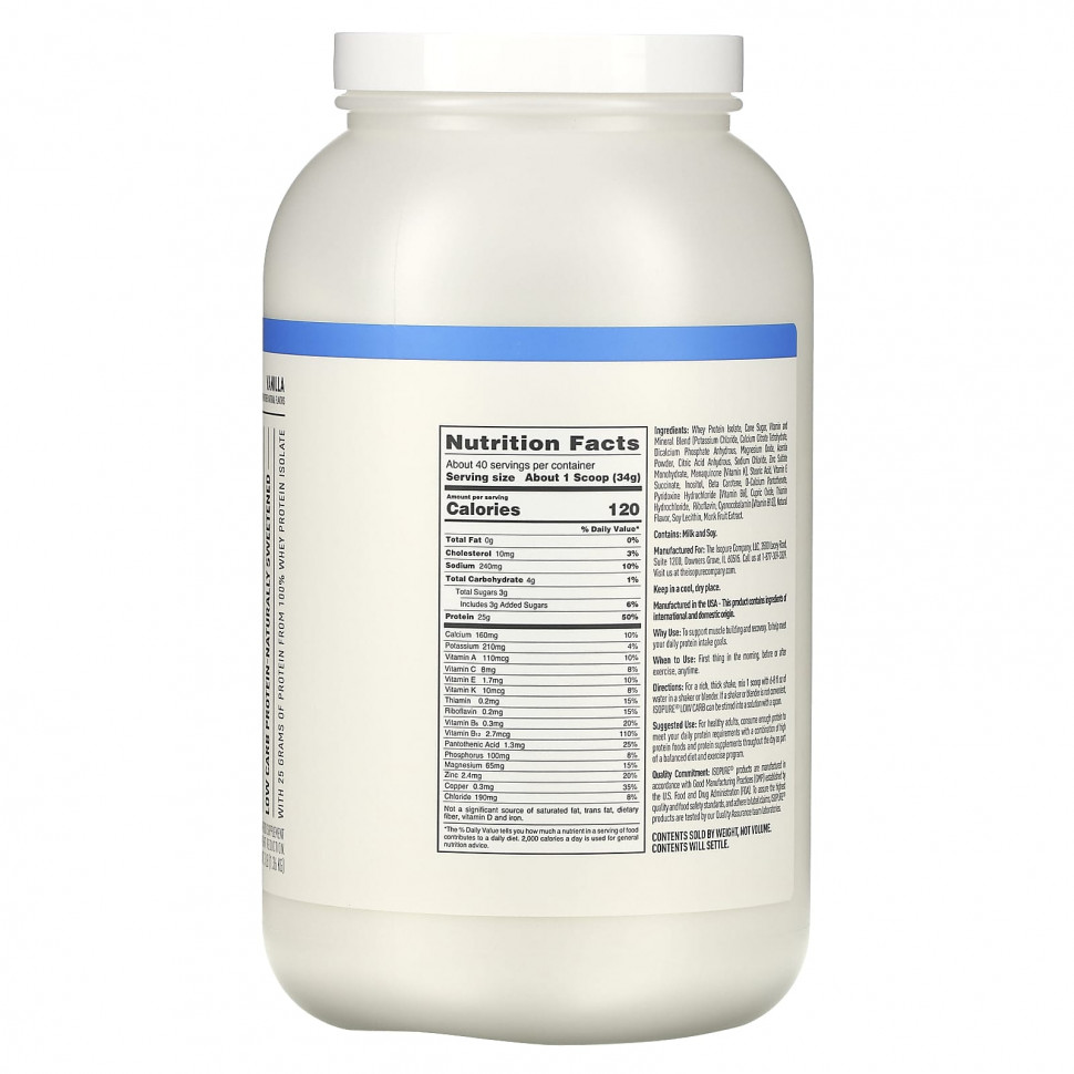Протеин ISOPURE® с низким содержанием углеводов и натуральным вкусом содержит 25 граммов 100% чистого изолята сывороточного протеина без ГМО и р-БСТ в каждой порции, а также добавленную смесь витаминов и минералов. Подслащено только тростниковым сахаром и архатом, без глютена, лактозы и наполнителей. Это очень вкусный протеин.