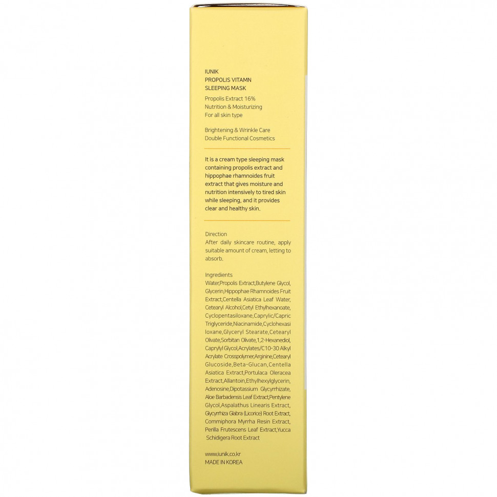 Это маска для сна кремового типа, содержащая экстракт прополиса и экстракт плодов гиппофы рамноидесной, которая интенсивно увлажняет уставшую кожу во время сна, делает ее чистой и здоровой.