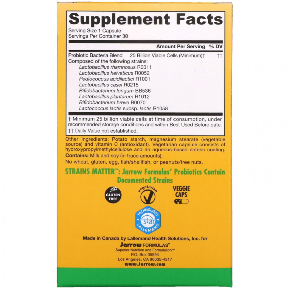 В клинических исследованиях на людях изучены такие штаммы пробиотиков, как бифидобактерии лонгум (B. longum) BB536, лактобактерии рамнозус (L. rhamnosus) R0011 и лактобактерии гелветикус (L. helveticus) R0052. Эти штаммы хорошо охарактеризованы и, как было показано, обладают способностью взаимодействовать посредством множества механизмов действия с кишечником и микробной экосистемой внутри него. Клинически доказано, что эти штаммы улучшают состав кишечной микрофлоры, способствуют здоровью кишечника и поддерживают иммунную реакцию.