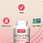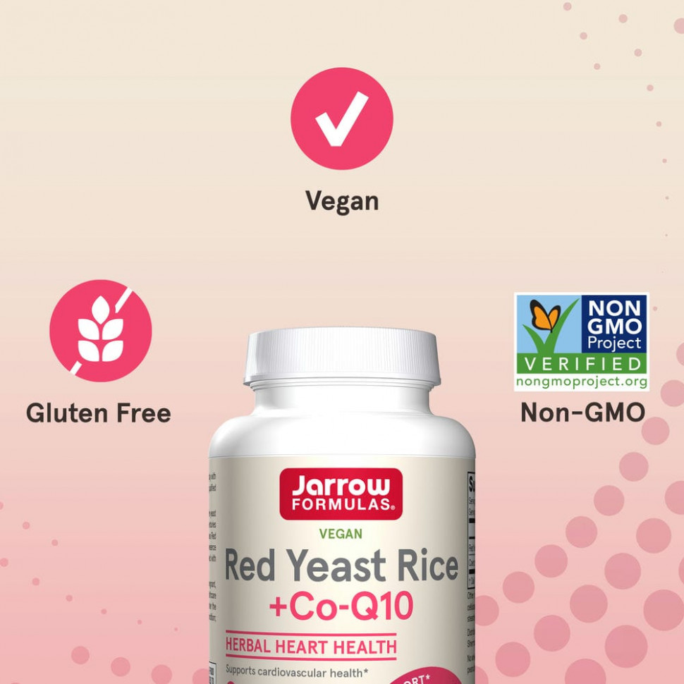 Красный дрожжевой рис — рис, ферментированный дрожжами Monascus purpureus, веками использовался в Азии в качестве пищевого консерванта, пищевого красителя и ароматизатора, а также в традиционных травяных формулах. Это часть рациона жителей Китая, Японии и азиатских сообществ США. Jarrow Formulas® использует красный дрожжевой рис, который тщательно ферментируется, чтобы избежать присутствия цитринина, природного микотоксина. Коэнзим Q10 дополняет красный дрожжевой рис и поддерживает здоровье сердечно-сосудистой системы.