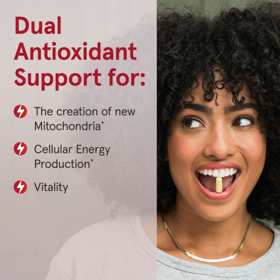 Двойная антиоксидантная поддержка для митохондриального биогенеза, выработки энергии и работы сердечно-сосудистой системы.