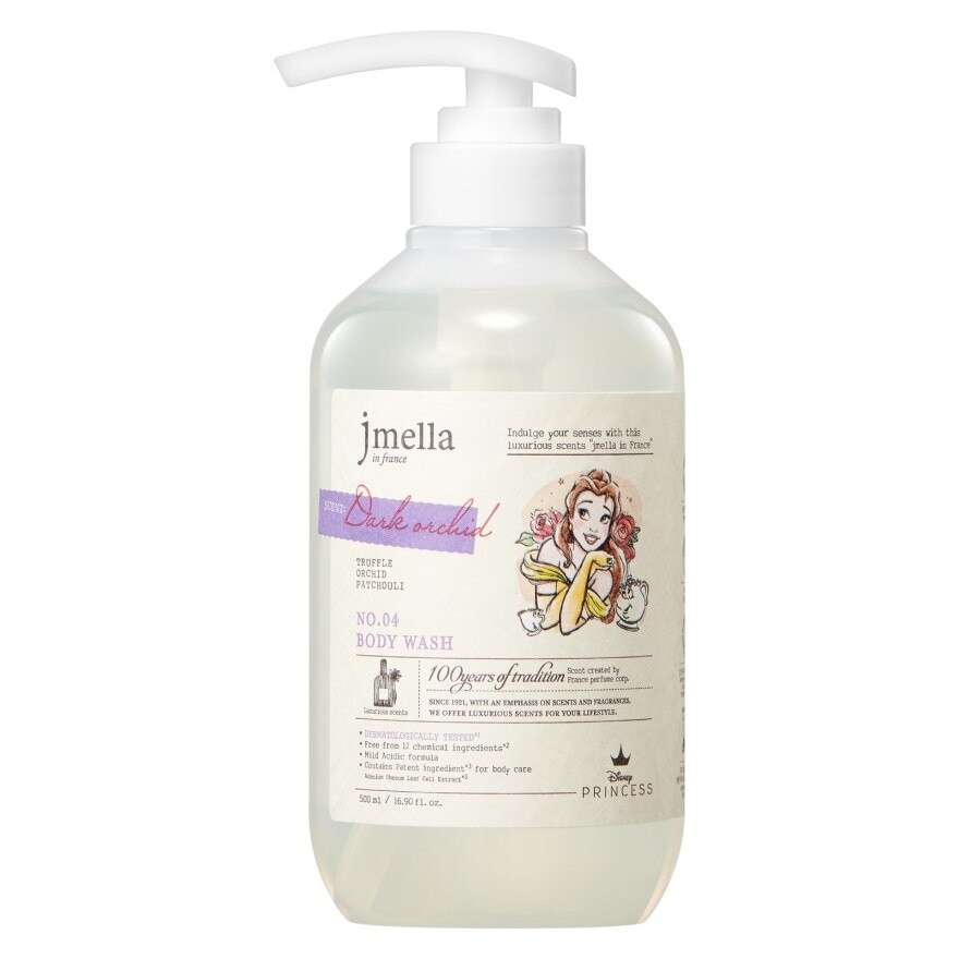 Jmella in france X Disney collaboration. Jmella Disney Body Wash Dark Orchid (Princess Belle). An amber floral flavor that creates a modem mood with a luxurious and sensual scent combining purple orchid petals and rich dark accord reminds the beauty and the strength of Princess Belle. Additional with the mystery of Patchouli and traffle which will convey the imagination of Beauty and the Beast castle. Daily luxury fragrance to enjoy from head to toe every day. Jmella princess line. Skin irritation test. 12 kinds of chemical ingredients free. Contains patented skin moisturizing ingredients. MADE IN KOREA