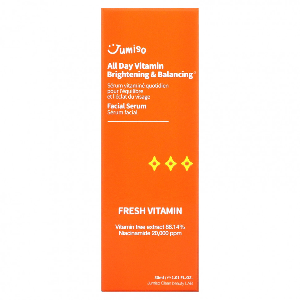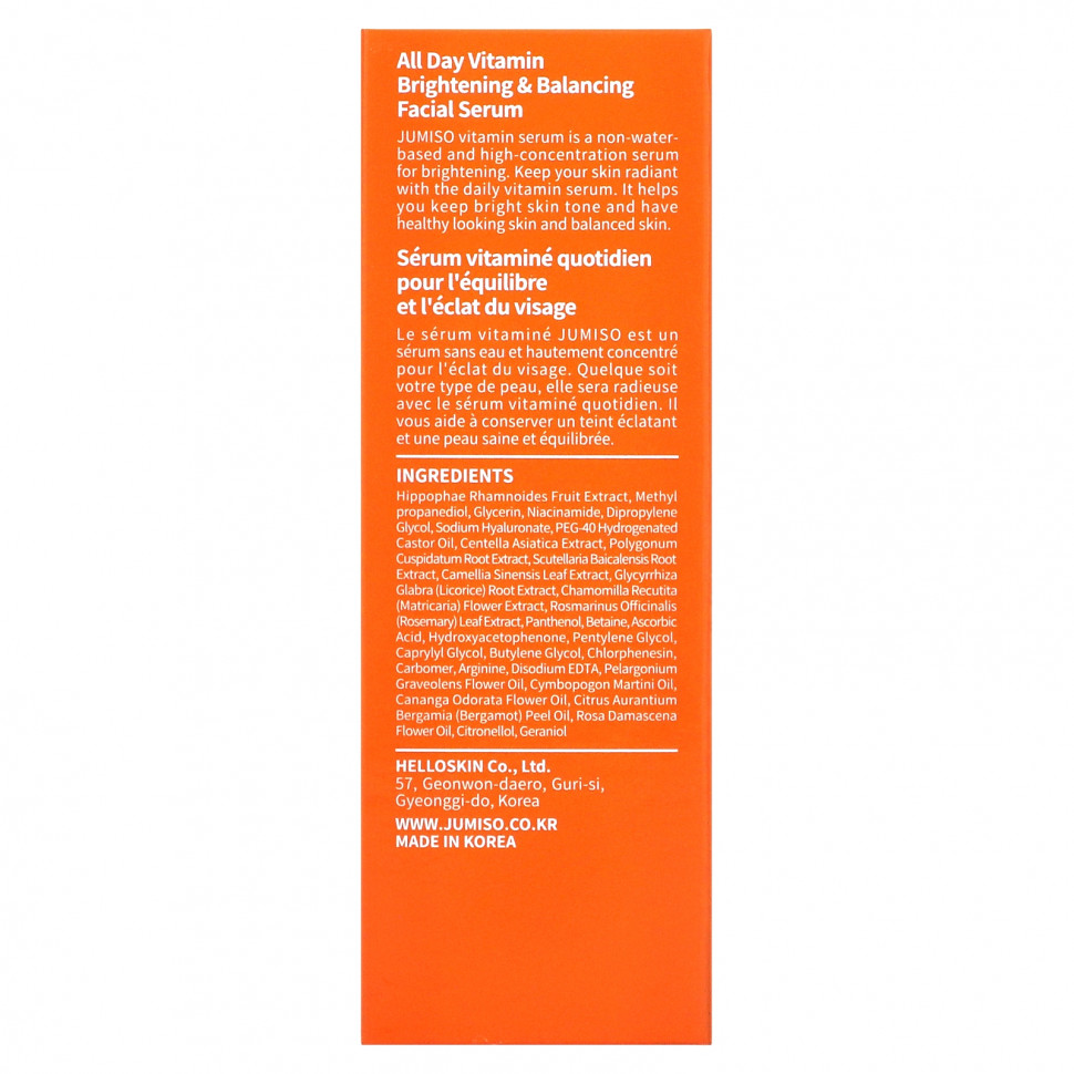 Витаминная сыворотка JUMISO — это сыворотка без воды с высокой концентрацией для осветления кожи. Придайте коже сияние с ежедневной витаминной сывороткой. Помогает сохранять яркий тон кожи, иметь здоровый и сбалансированный вид.