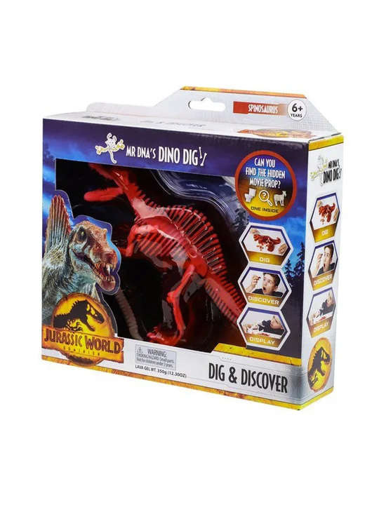 JURASSIC WORLD Toy Dominion Dino Dig Spinosaurus, Role-play as a paleontologist and imagine what life on Earth was like millions of years ago as you build intricately detailed models of Spinosaurus dinosaur skeletons for display. Get out your scalpel, it’s time to take on the role of a BioSyn lab engineer and dig through the slimy gel to unearth a Jurassic skeleton. There is also one for 6 mystery movie props inside to be found! Once you have unleashed your dino from the gel, you can also stand to display and marvel at the prehistoric greatness of this truly epic species. Adults and all-natural history enthusiasts will enjoy constructing this model to create a museum-style display.