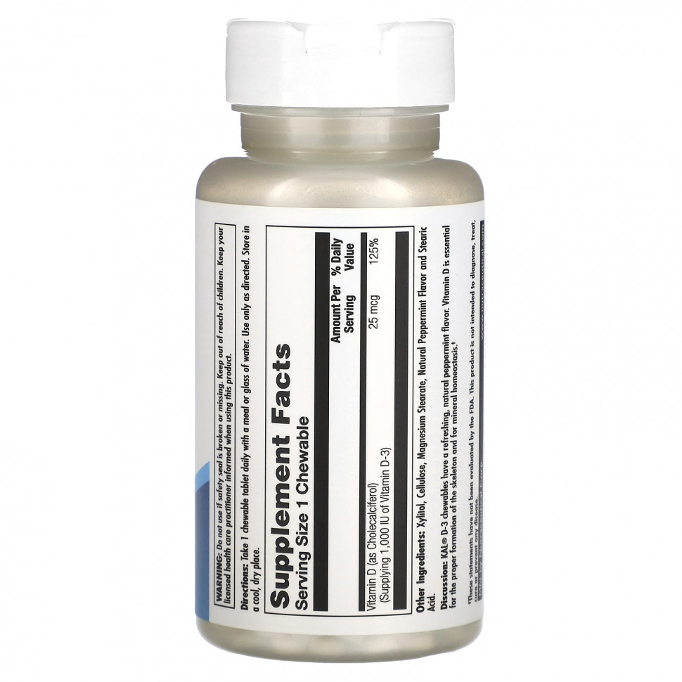 Описание. Жевательные таблетки KAL® D-3 обладают освежающим натуральным мятным вкусом. Витамин D необходим для правильного формирования скелета и минерального гомеостаза.