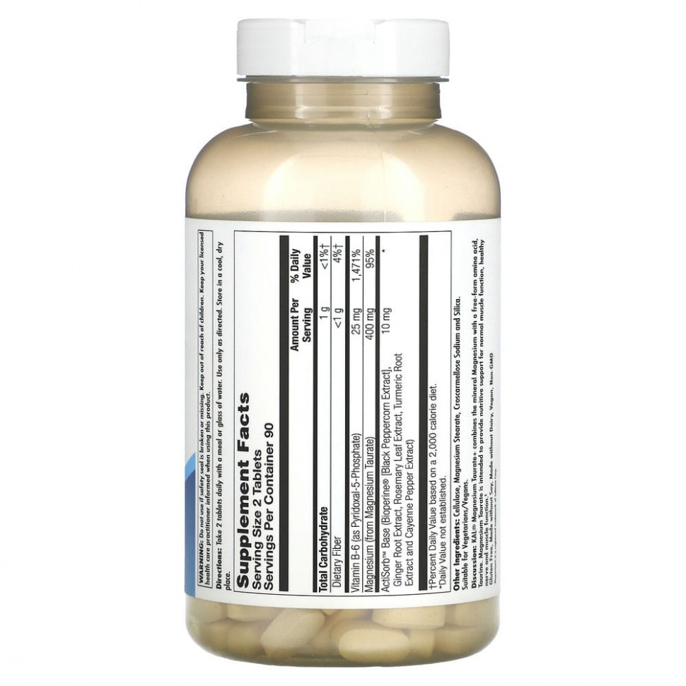 Описание. Таурат магния KAL® плюс —это микроэлемент магний в сочетании со свободной аминокислотой таурином. Туарат магния оказывает питательную поддержку, необходимую для нормального здорового функционирования нервной системы и мышц, а также для регуляции здорового потока ионов через клеточные мембраны. Это помогает обеспечить стабильность мембран и защитить от окислительного стресса сердце, кровеносные сосуды и ткани. Пиридоксаль-5-фосфат, коферментная форма витамина B6, обеспечивает биодоступную питательную поддержку, необходимую для синтеза эритроцитов и работы нервной ткани.