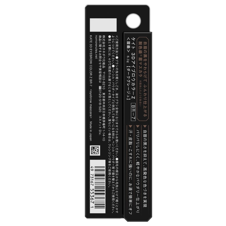Kate 3D Eyebrow Color Z Br 7 (Dark Greige) 6.3 G. Soften The Black Of Your Natural Eyebrows For A Fluffy Look. A Bleached Level Eyebrow Mascara Bleached Level . Gives Light Shades As If Bleaching The Eyebrow Resistant To Sweat Sebum And Friction. Comes Off With Warm Water. Product Features Coloration That Softens The Black Of Natural Eyebrows. Contains Pearls That Soften The Black Of Your Natural Eyebrows. Achieves High Coloration. Lightweight Powdery Finish. Liquid Containing High Powder Content Does Not Turn Stiff After Drying. Provides A Fluffy. Lightweight And Powdery Finish. A Color That Produces A Natural Eyebrow Look. Brush That Can Easily Apply Onto Detailed Areas And Does Not Get Onto Skin. Thoroughly Tints With One Swipe. Fits Onto Uneven Surfaces Of The Eye Area For Easier Application Onto The Inner And Outer Corners And Does Not Get Onto Skin.