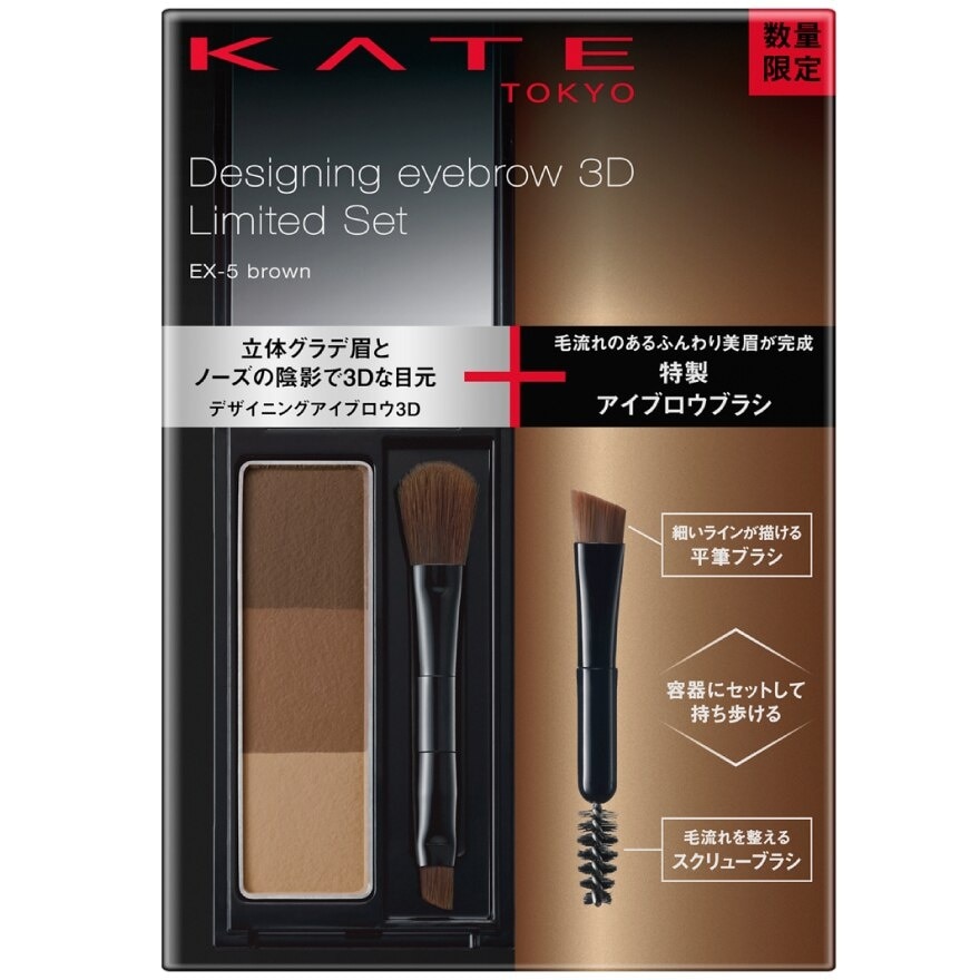 KATE DESIGNING EYEBROW 3D SET 6 LIMITED EDITION FREE!! LIMITED Eyebrow Spoolie Blush 2 Color. A powdered eyebrow color with 3 gradation color in a pallet. It enables you to create natural 3 dimensional eyebrow or ridge of the nose. You can mix the color to make it to your preferred color density. Try to put the light color on inside end and the darker color on the outside end of your eyebrow in order to make it look 3D. Eyebrows are the key to makeup. Gradation powder to create 3D eyebrows and nose shadows. Create 3D eyebrows with 3 shade f light to dark shadow ‘Airy and matte texture that blend With skin.