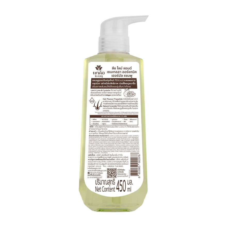 Khaokho Talaypu Herbal Shampoo Leech Lime amp; Centella Designed to combat hair loss, Khaokho's unique shampoo combines Citronellic Acid from Leech Lime to strengthen hair roots with Tannins and Phytosterols from Centella to stimulate collagen production in the scalp. This duo of powerful, Natural active ingredients is blended into our 12-Free, Silicone-free base to give you sustained, healthy, and strong hair. Massage into wet hair and scalp. Lather up gently. Rinse thoroughly. Repeat if necessary. Keep the product away from sunlight. If there is an allergic reaction or irritation Rinse off with plenty of clean water. Stop using immediately and please consult a doctor.