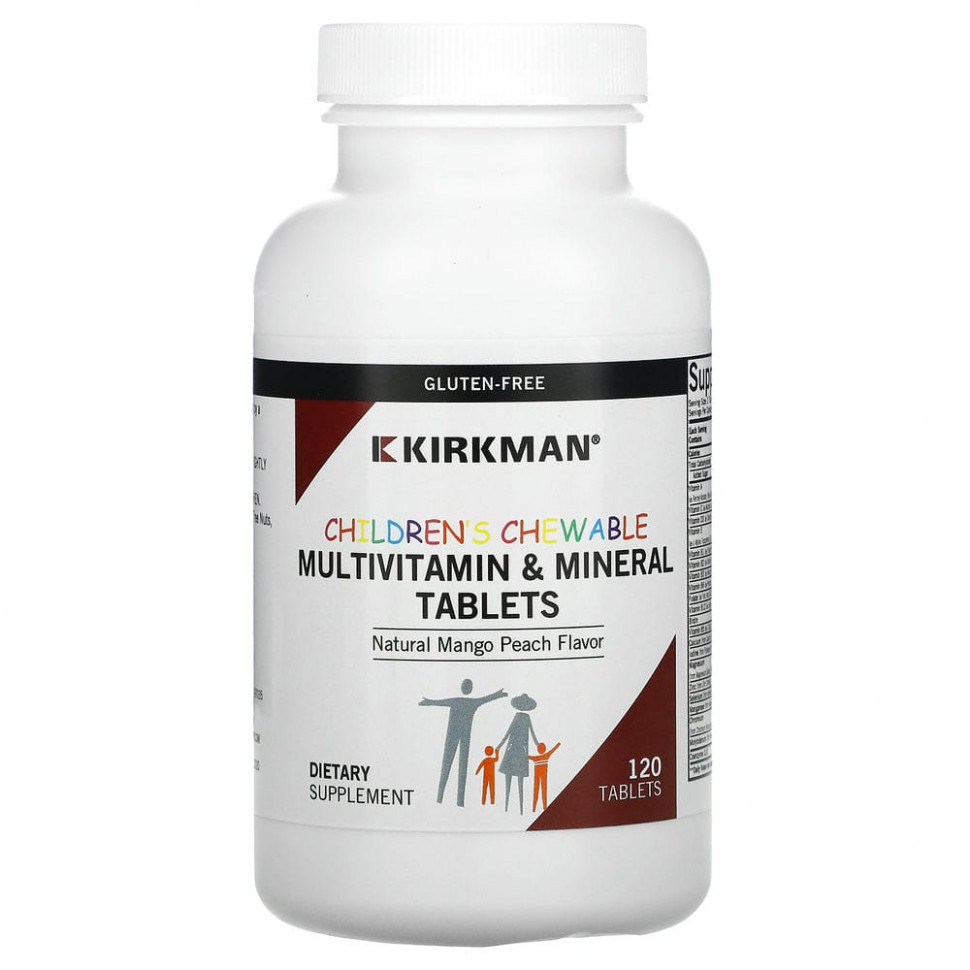 Детские жевательные мультивитамины и микроэлементы Kirkman содержат те же основные ингредиенты, что и детские жевательные мультивитаминные вафли Kirkman 0288-120, но без искусственных подсластителей.