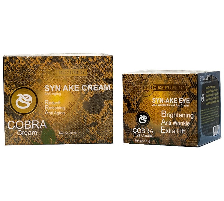 Корейская косметологическая компания Nature Republic выпустила линию средств, направленных на эффективную коррекцию и разглаживание мимических морщин на основе яда кобры: крем Syn-Ake Intensive Cobra Cream и увлажняющую сыворотку Syn-Ake Intensive Moisture Serum.